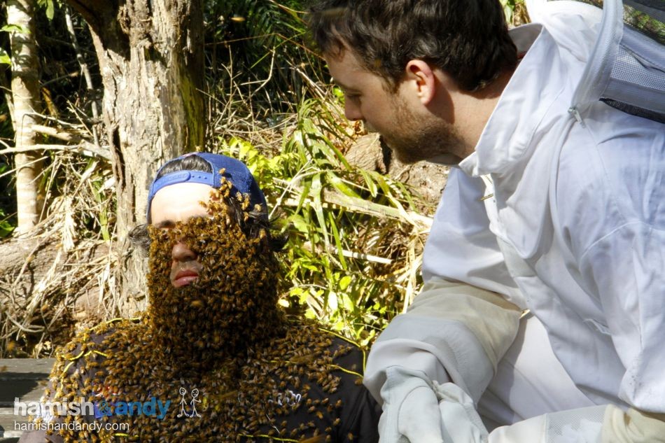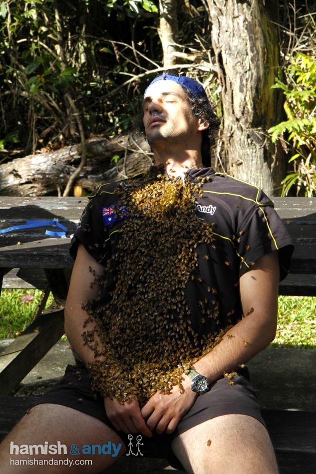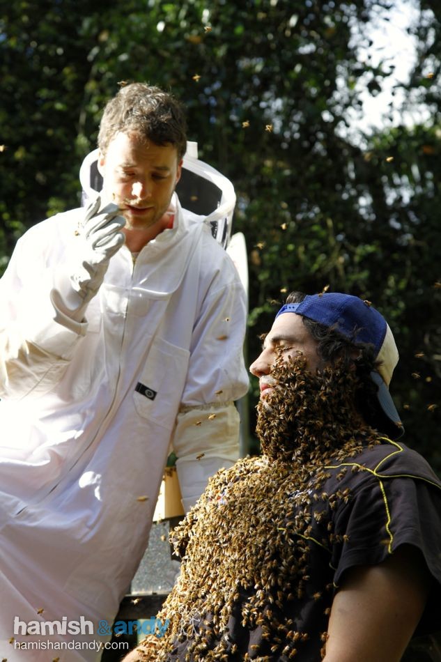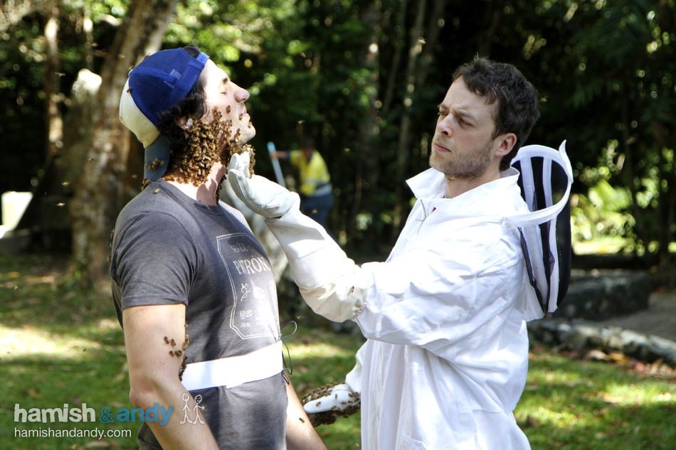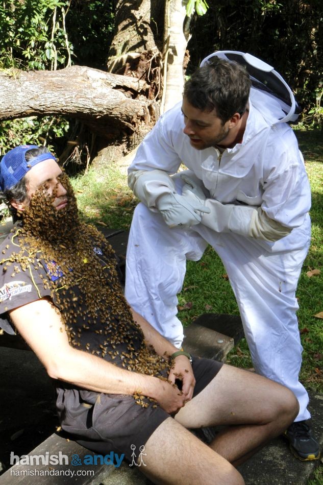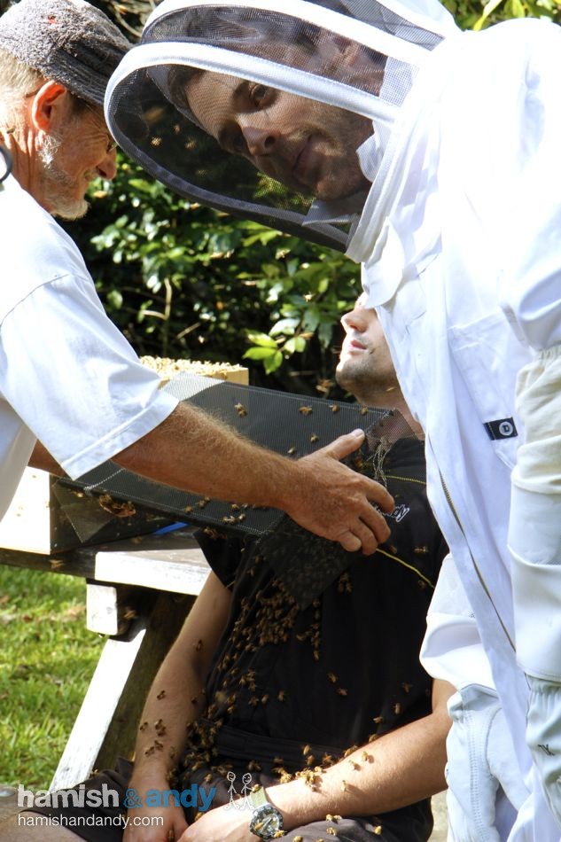 Hamish & Andy’s “Caravan of Courage” visited Honey House Kuranda in 2012. See Andy prove his bravery by being covered in a colony of bees! And brave he was – lasting around 40 minutes with 8000 bees crawling on his face – well done, Andy!
