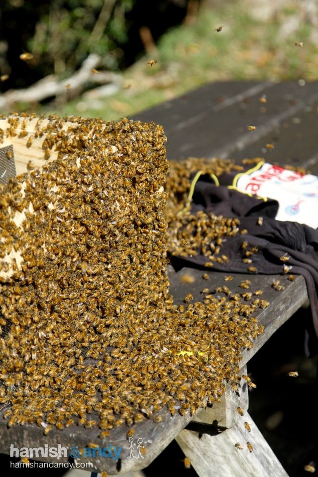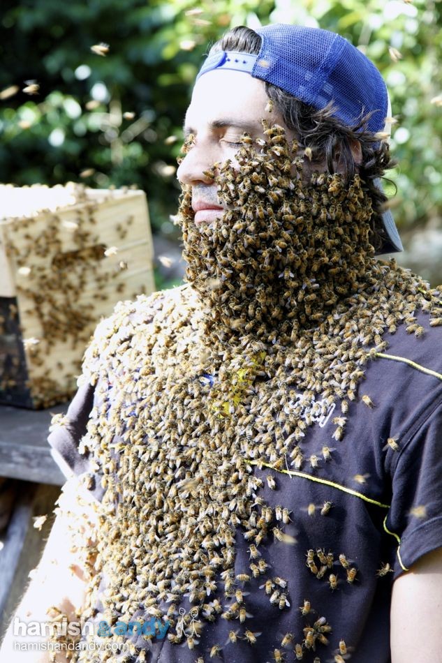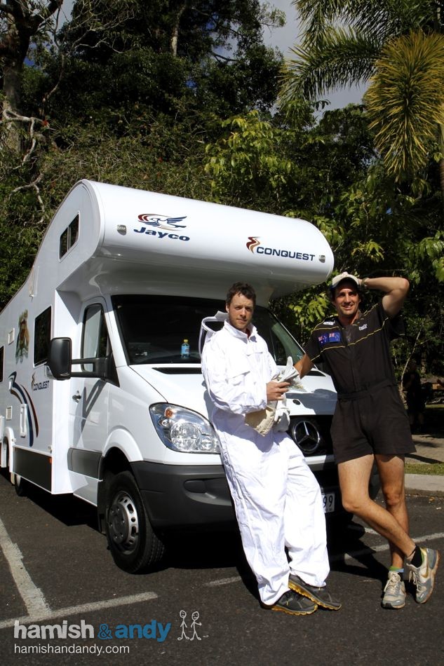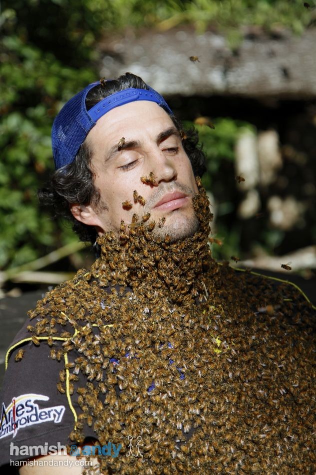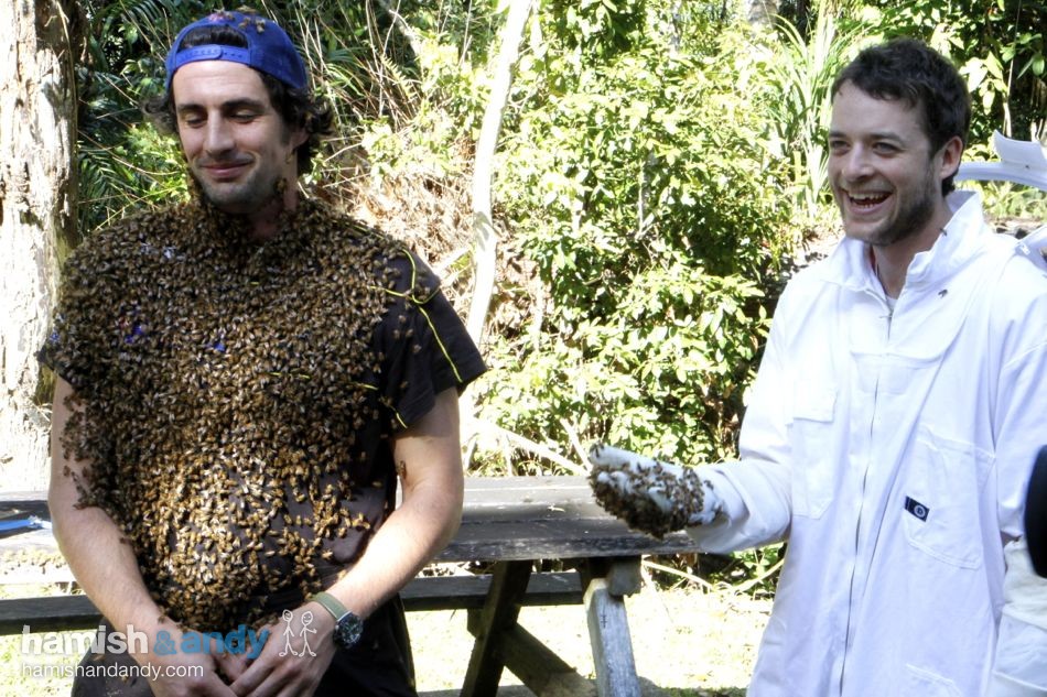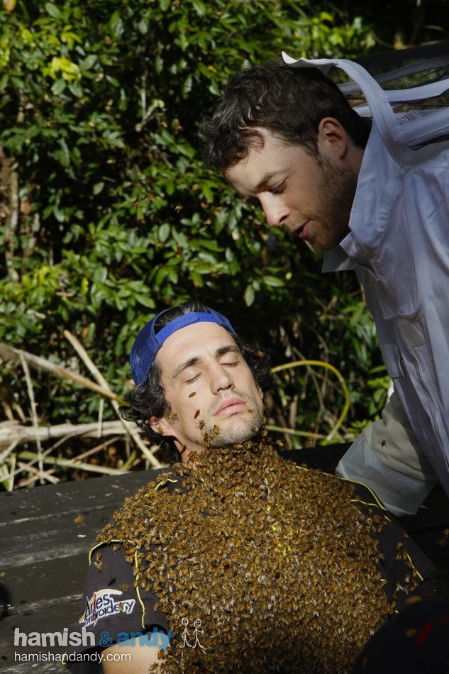 Hamish & Andy’s “Caravan of Courage” visited Honey House Kuranda in 2012. See Andy prove his bravery by being covered in a colony of bees! And brave he was – lasting around 40 minutes with 8000 bees crawling on his face – well done, Andy!